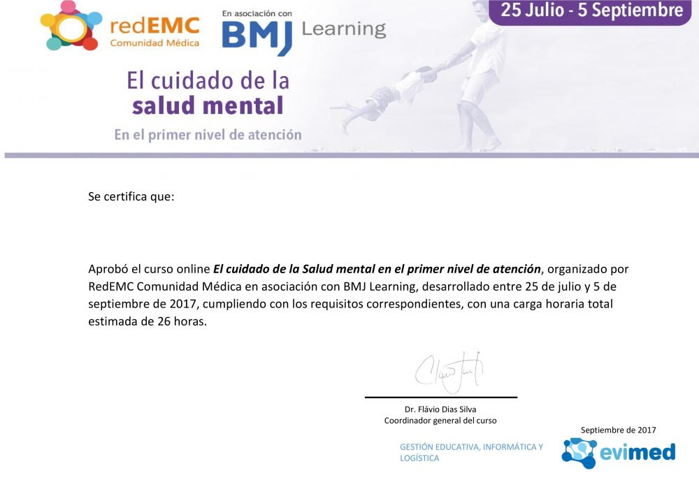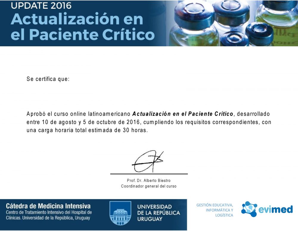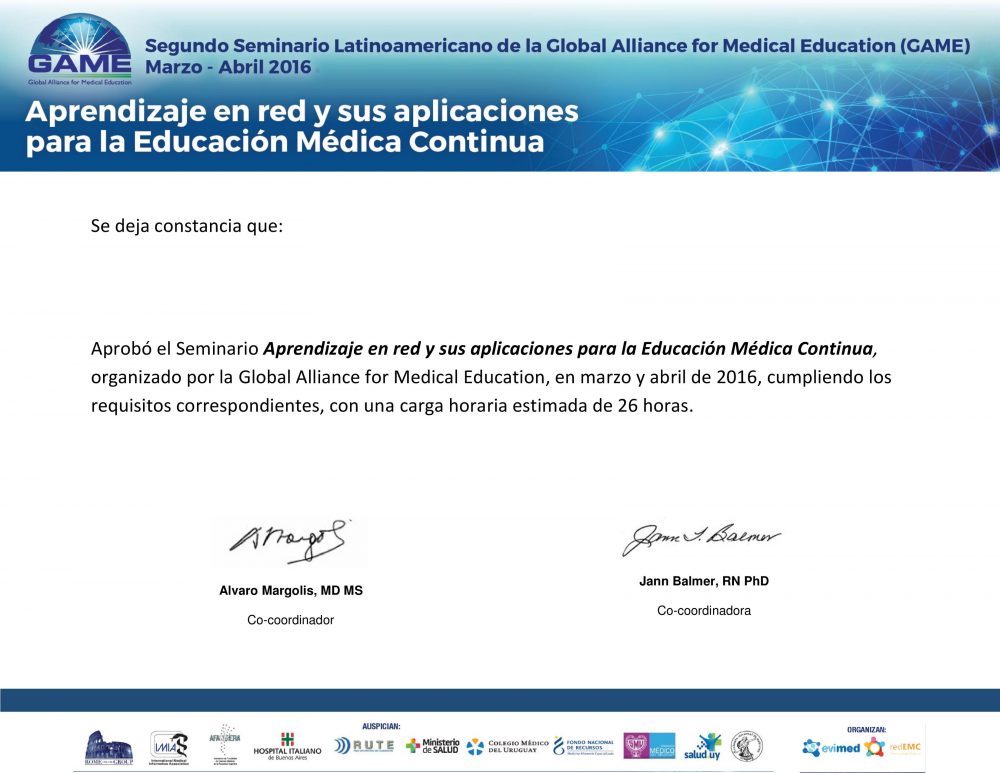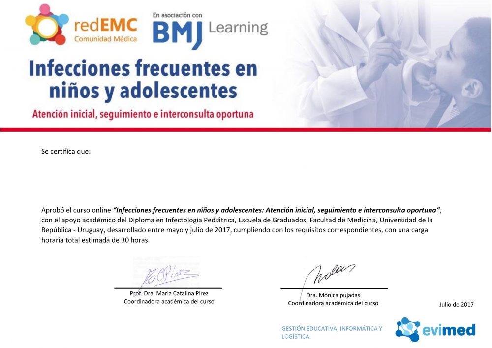 Cuando completes uno de nuestros cursos, recibirás un certificado de actualización médica continua verificable que podrás compartir con tus amigos, familiares, compañeros de trabajo e instituciones de salud.