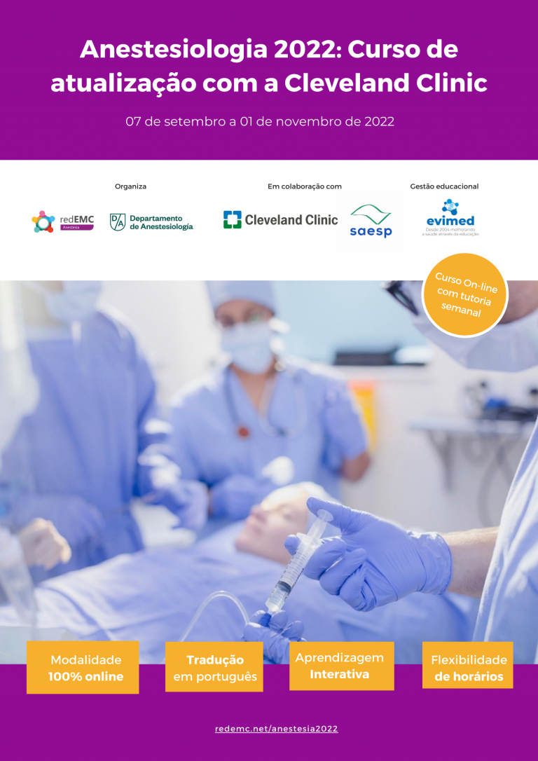 Este curso é elaborado em parceria com a Cleveland Clinic e a Sociedade de Anestesiologia do Estado de São Paulo – SAESP; e organizado em conjunto com o Depto. de Anestesiologia da Faculdade de Medicina da Universidade da República do Uruguai (FMED).